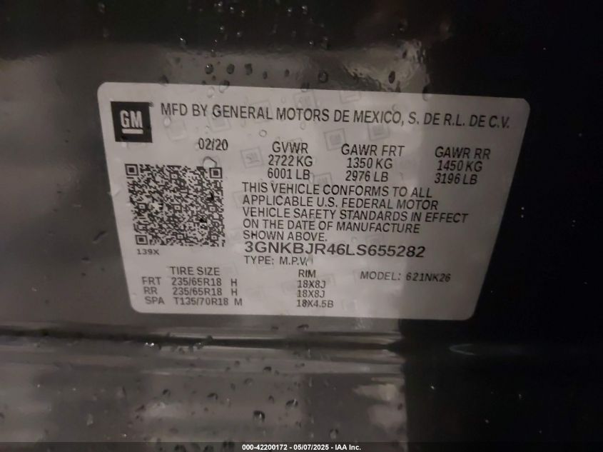 CHEVROLET BLAZER 2.0 2020 р.в., Повний привід (3GNKBJR46LS655282) з США