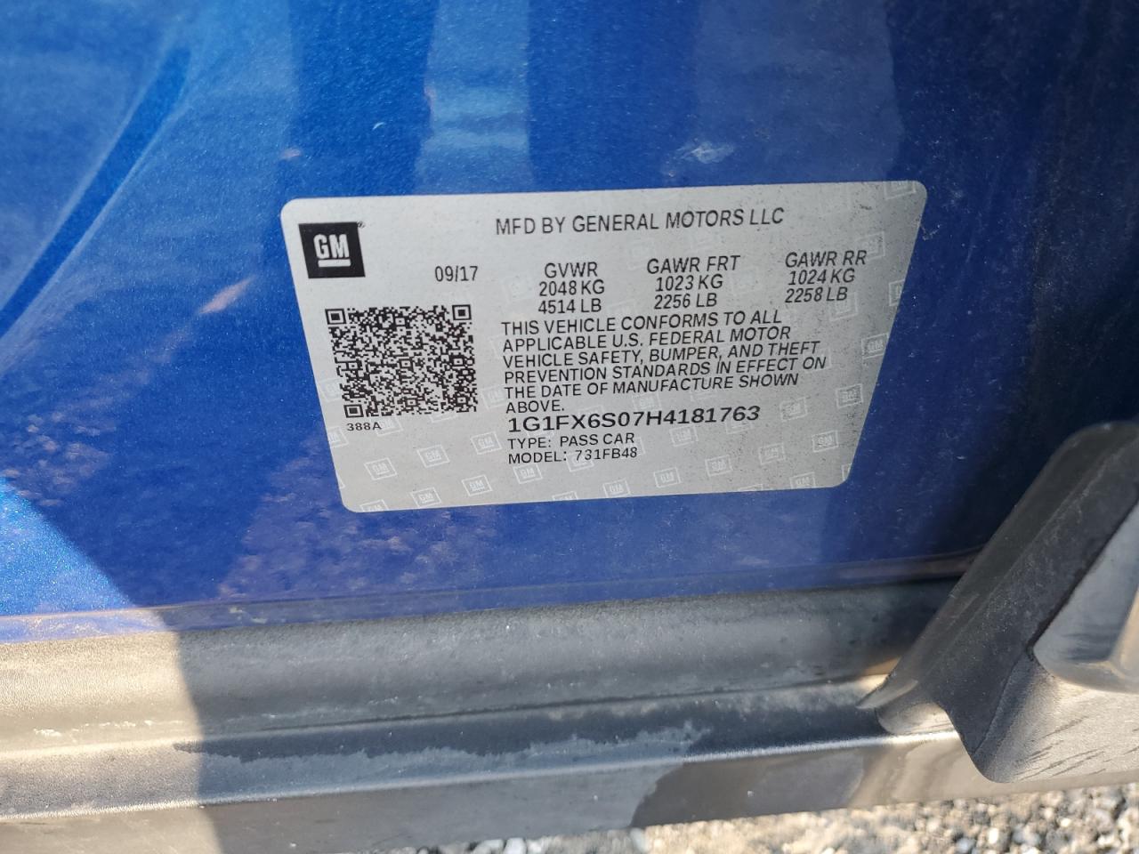 Колір СинійVIN 1G1FX6S07H4181763Стан ЗаводитьсяУшкодження Передня або задняДата аукціону 2025-11-06
