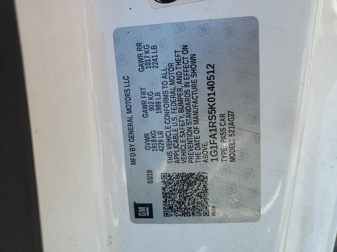Колір БілийЦиліндри 6Привід Задній привідVIN 1G1FA1RS5K0140512Стан Заводиться та їде (перевірено)Ушкодження Передня або задняДата аукціону 2025-11-10