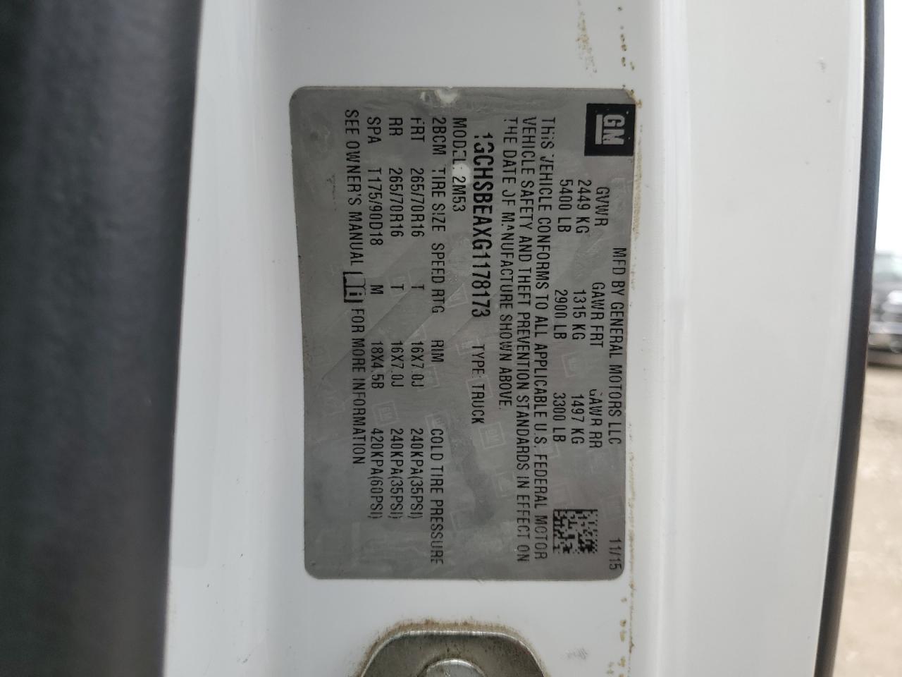 2016 CHEVROLET COLORADO WT