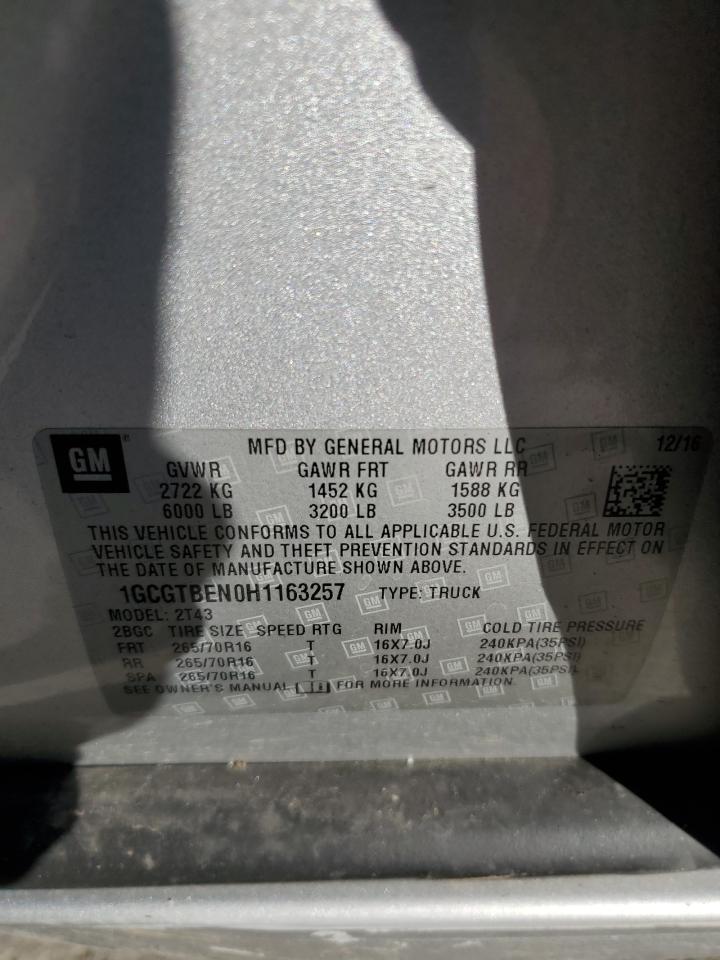 CHEVROLET COLORADO 3.6 2017 р.в., 4x4 з заднім приводом (1GCGTBEN0H1163257) з США