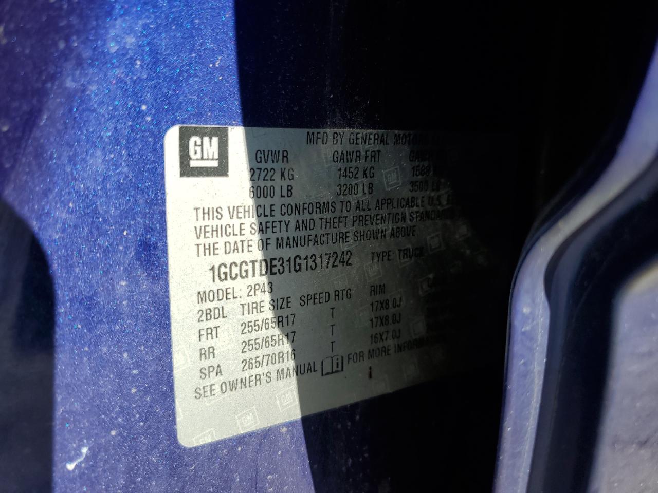 CHEVROLET COLORADO 3.6 2016 р.в., 4x4 з заднім приводом (1GCGTDE31G1317242) з США