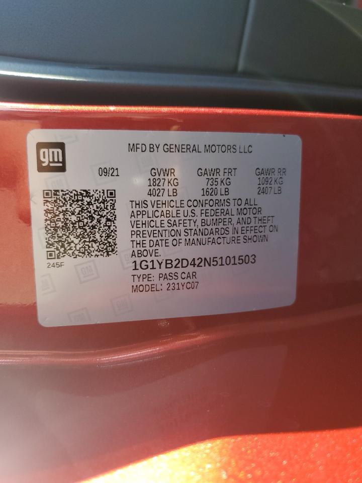 CHEVROLET CORVETTE 6.2 2022 р.в., Задній привід (1G1YB2D42N5101503) з США