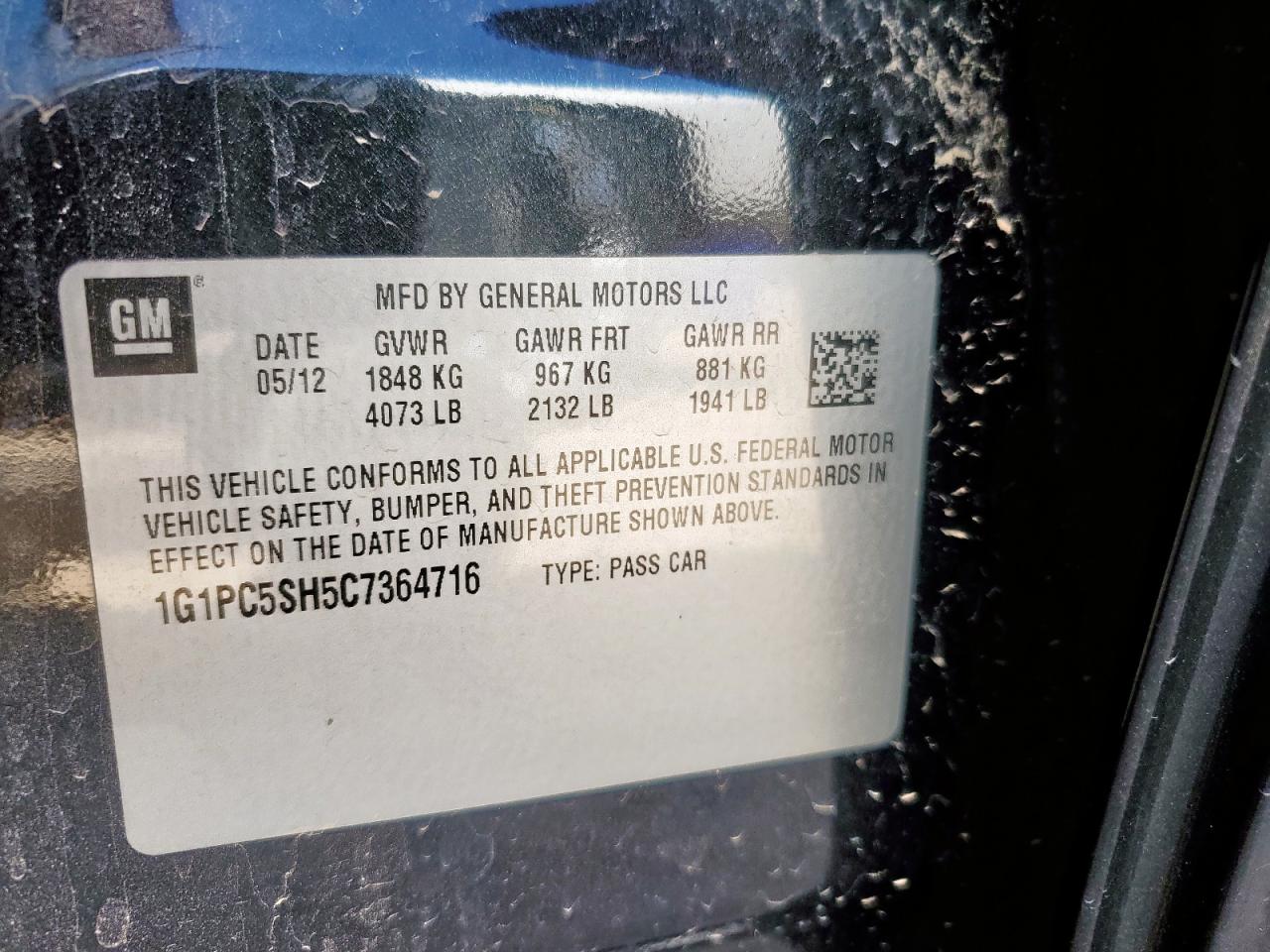 2012 CHEVROLET CRUZE 1LT