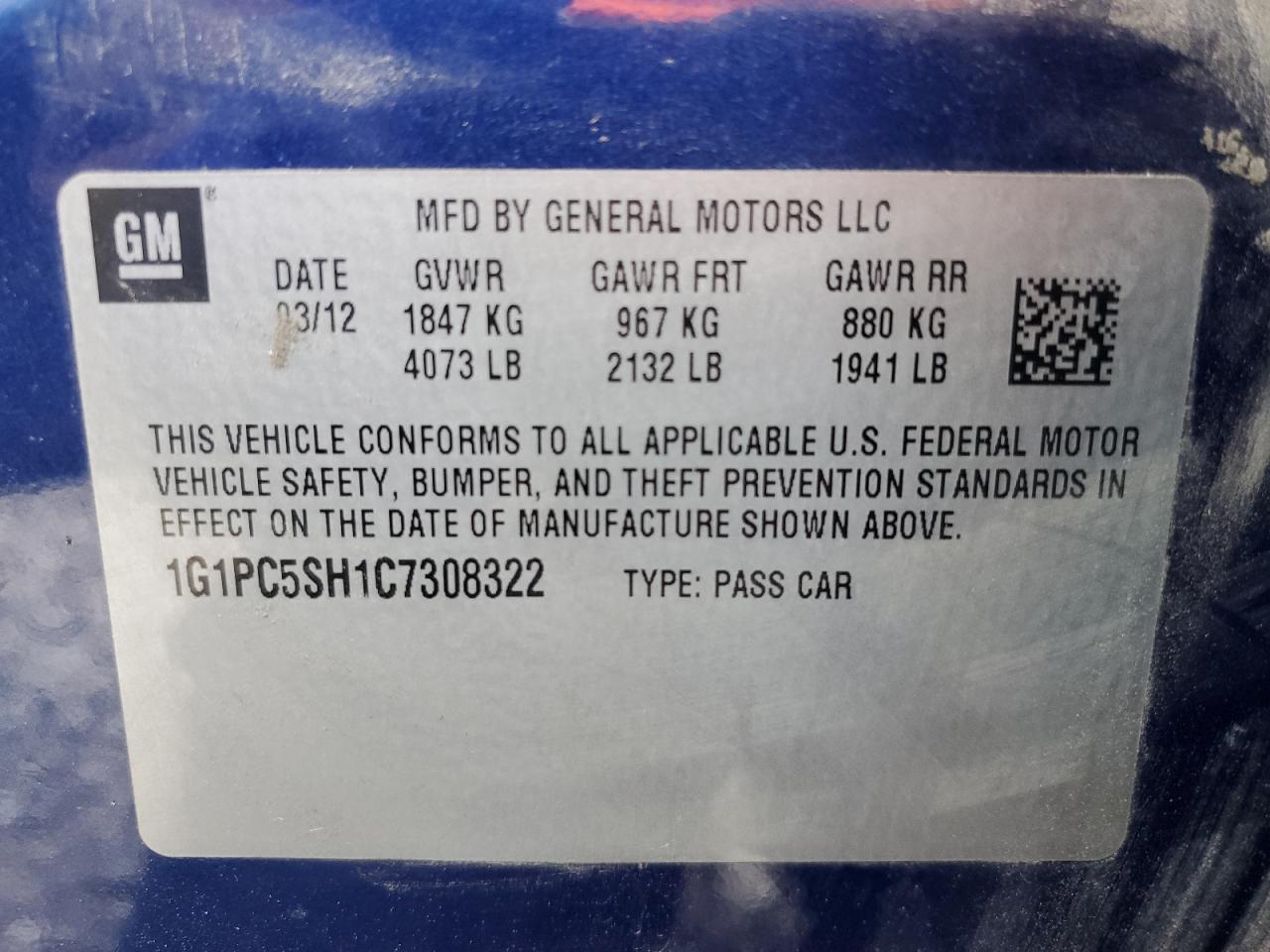 Колір СинійЦиліндри 4VIN 1G1PC5SH1C7308322Стан Заводиться та їде (перевірено)Ушкодження Передня або задня
