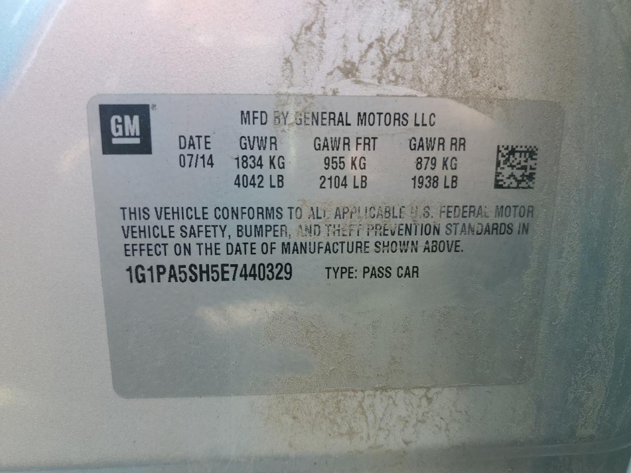 Колір СрібнийЦиліндри 4VIN 1G1PA5SH5E7440329Стан НевідомоУшкодження Передня або задня