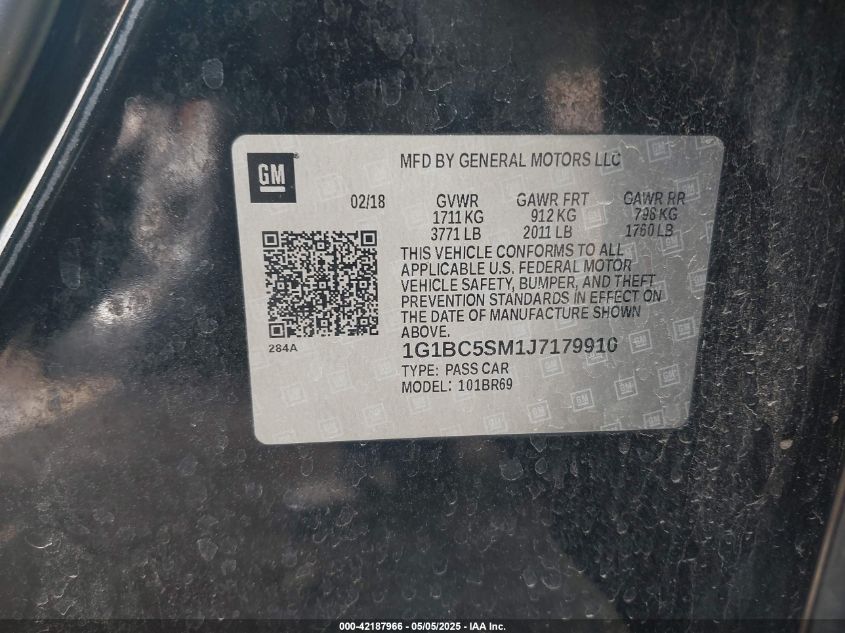 CHEVROLET CRUZE 1.4 2018 р.в., Передній привід (1G1BC5SM1J7179910) з США