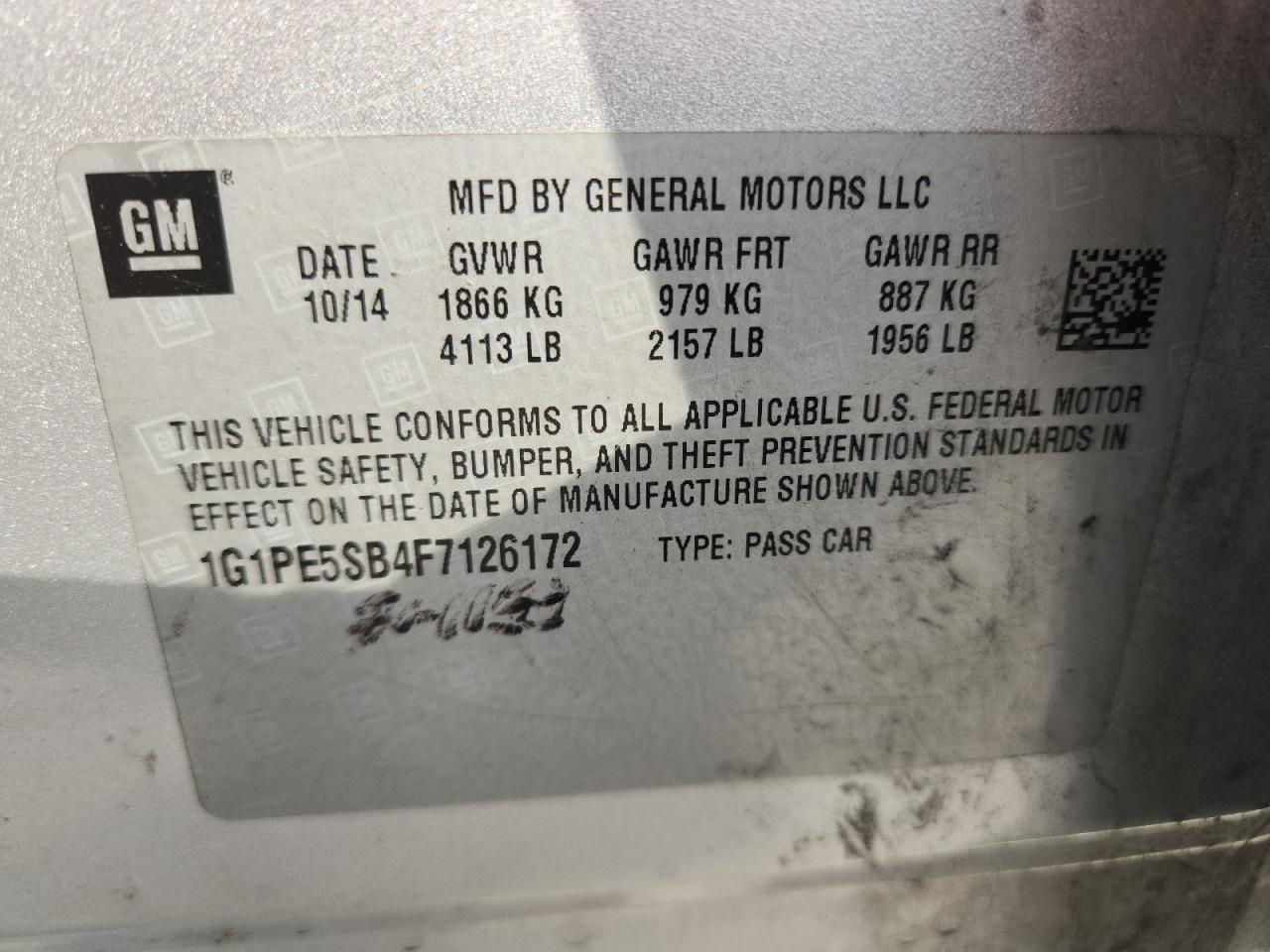 Колір СрібнийЦиліндри 4VIN 1G1PE5SB4F7126172Стан Заводиться та їде (перевірено)Ушкодження Передня або задняДата аукціону 2025-11-03