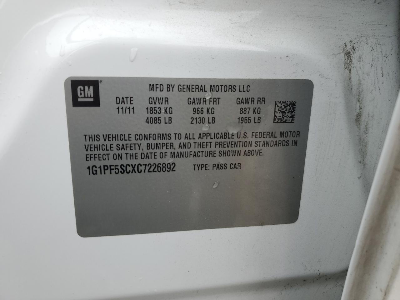Колір БілийЦиліндри 4VIN 1G1PF5SCXC7226892Стан Заводиться та їде (перевірено)Ушкодження ЗадняДата аукціону 2025-11-03