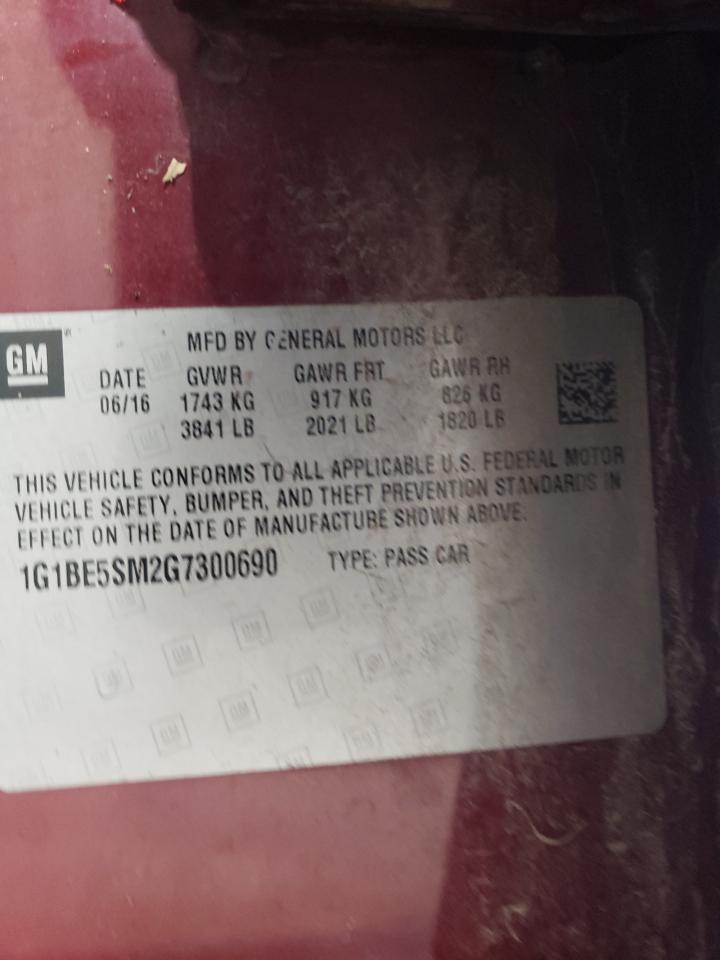 Колір БургундіяЦиліндри 4VIN 1G1BE5SM2G7300690Стан НевідомоУшкодження Передня або задняДата аукціону 2025-11-03