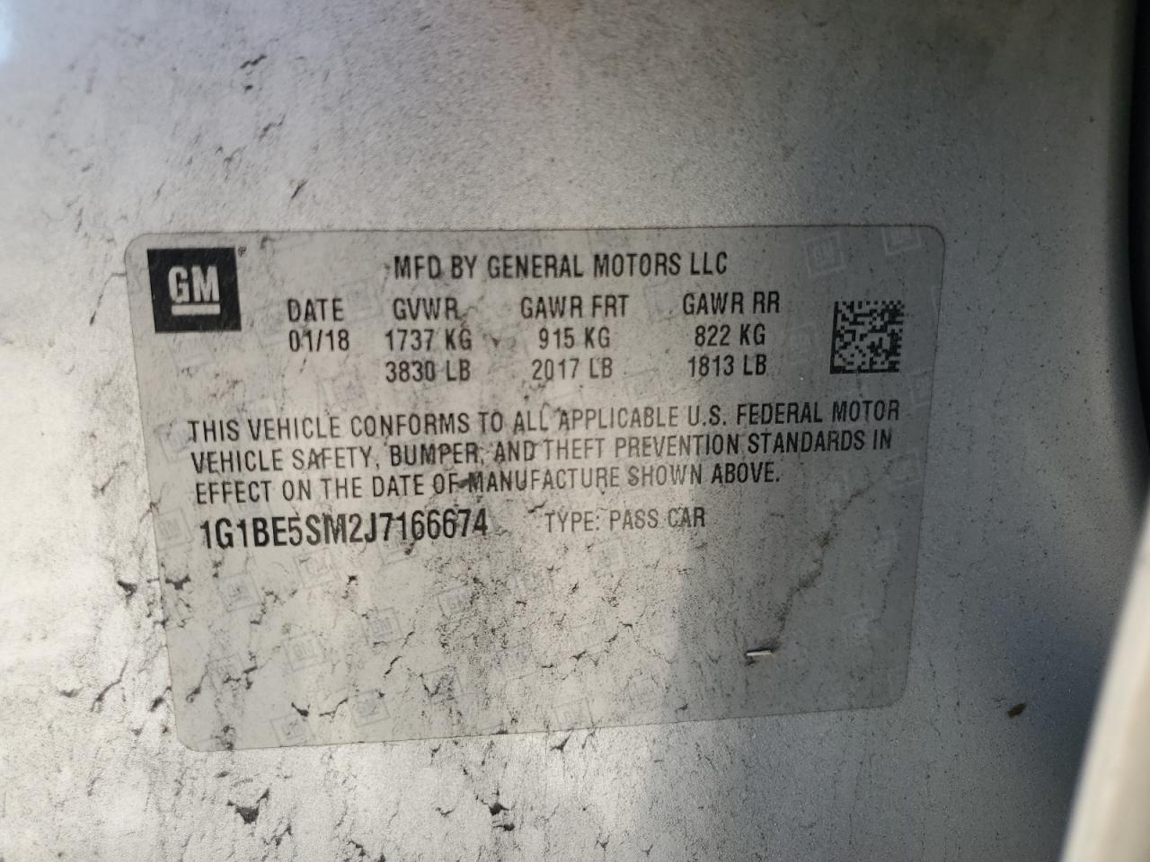 Колір СрібнийЦиліндри 4VIN 1G1BE5SM2J7166674Стан Заводиться та їде (перевірено)Ушкодження Передня або задня