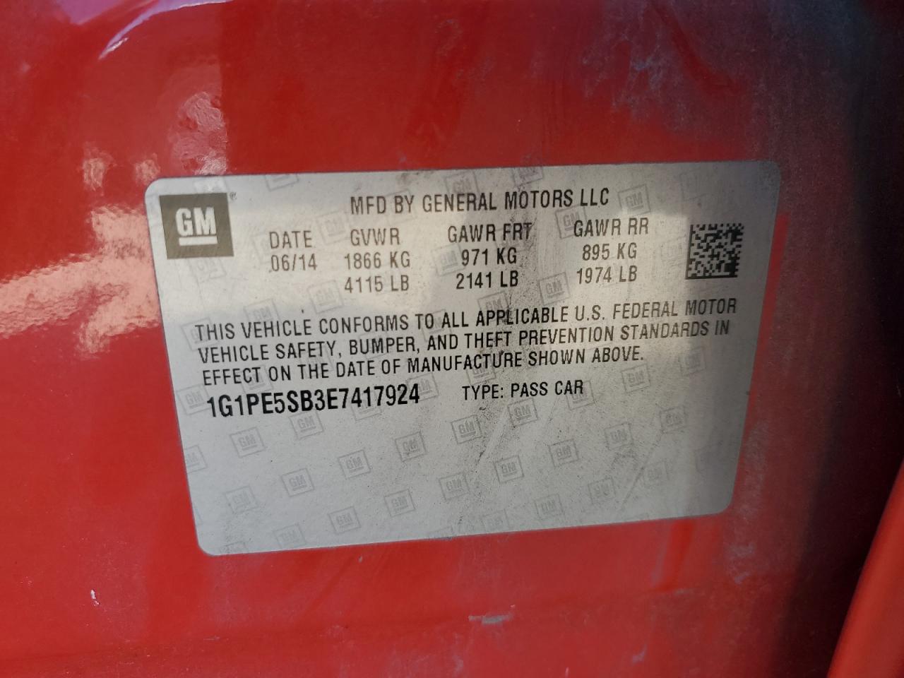 Колір ЧервонийЦиліндри 4VIN 1G1PE5SB3E7417924Стан НевідомоУшкодження Передня або задня