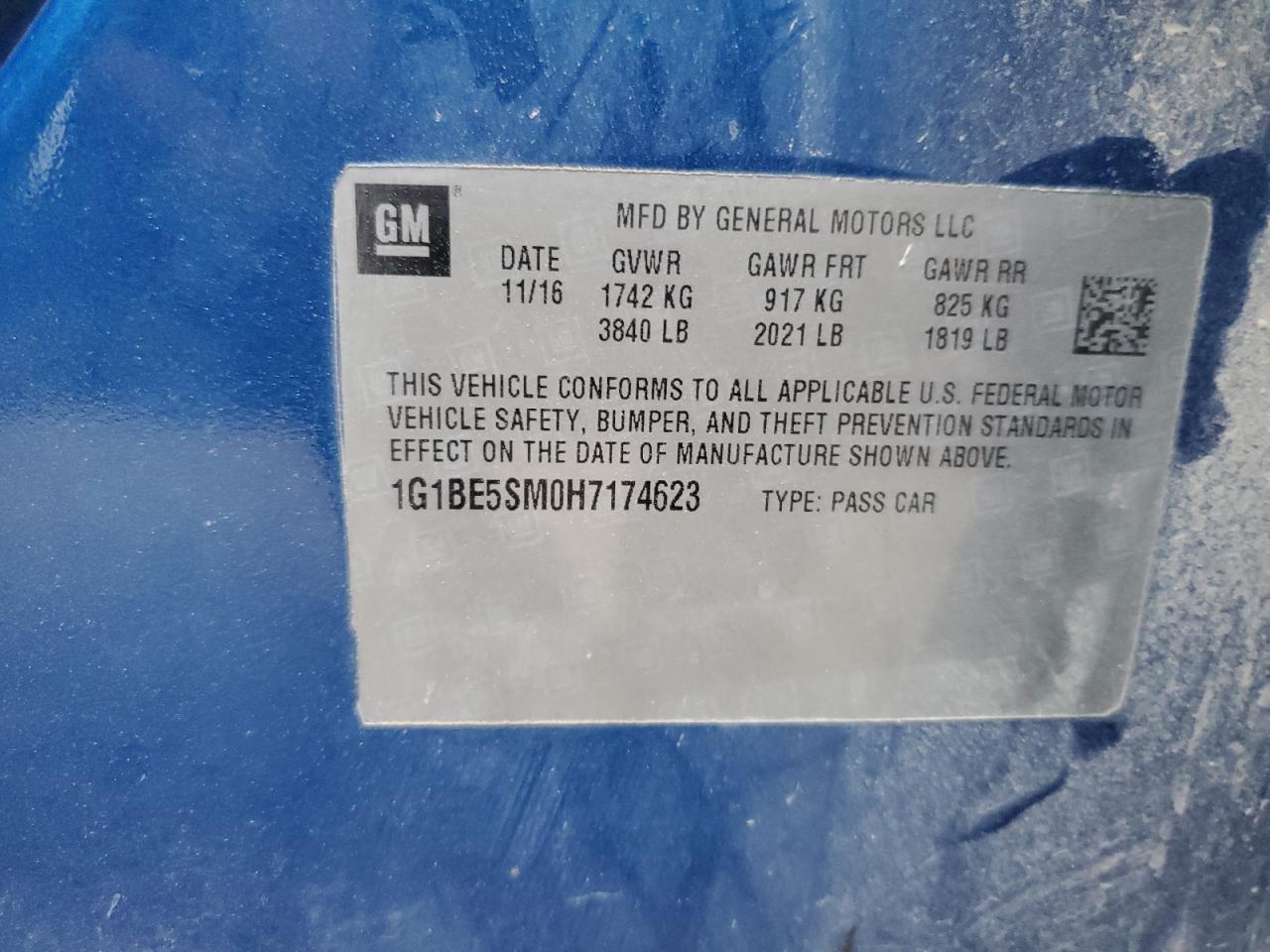 Колір СинійЦиліндри 4VIN 1G1BE5SM0H7174623Стан Заводиться та їде (перевірено)Ушкодження Передня або задня