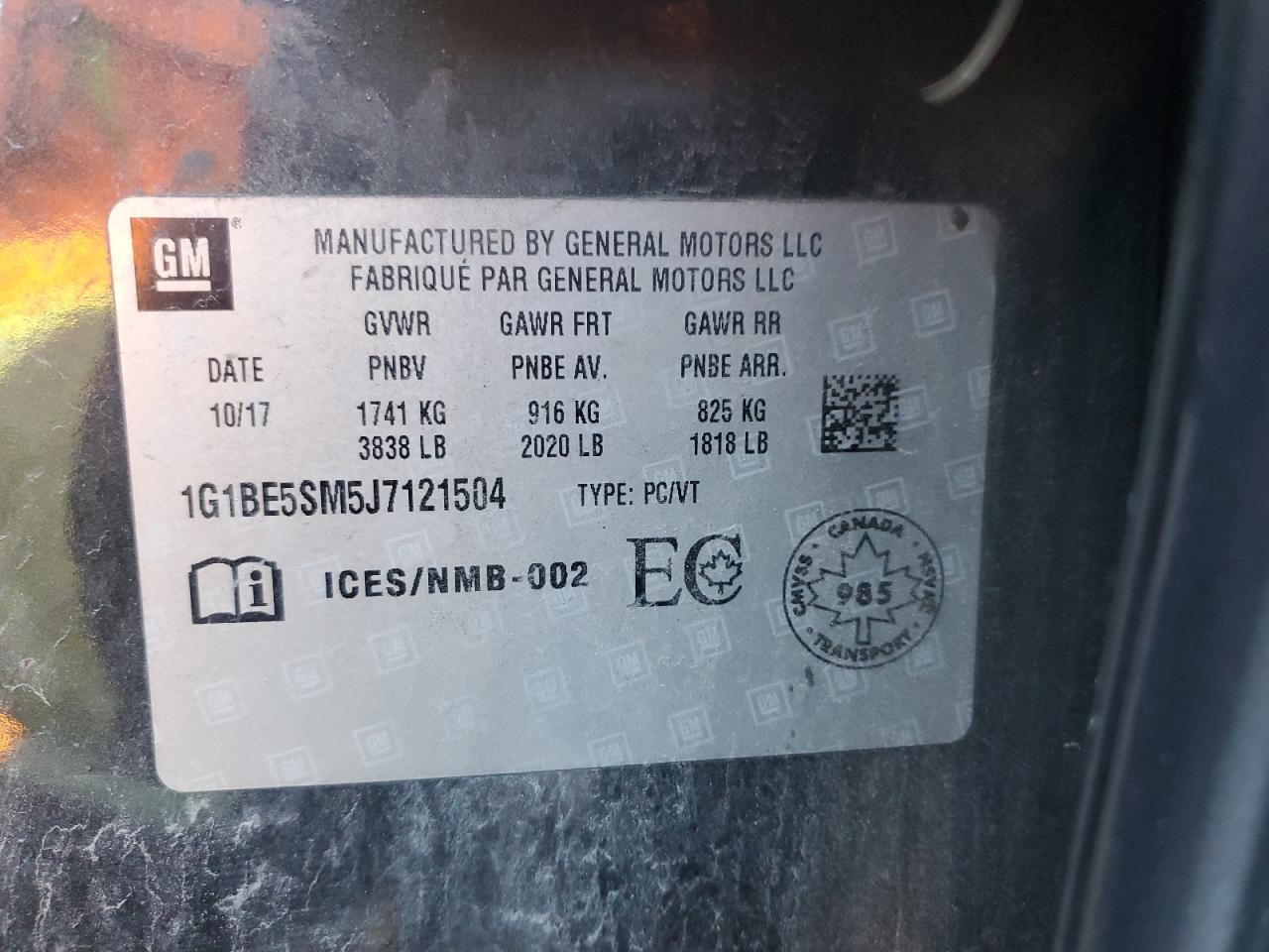 Колір Деревне вугілляЦиліндри 4VIN 1G1BE5SM5J7121504Стан Заводиться та їде (перевірено)Ушкодження Передня або задня