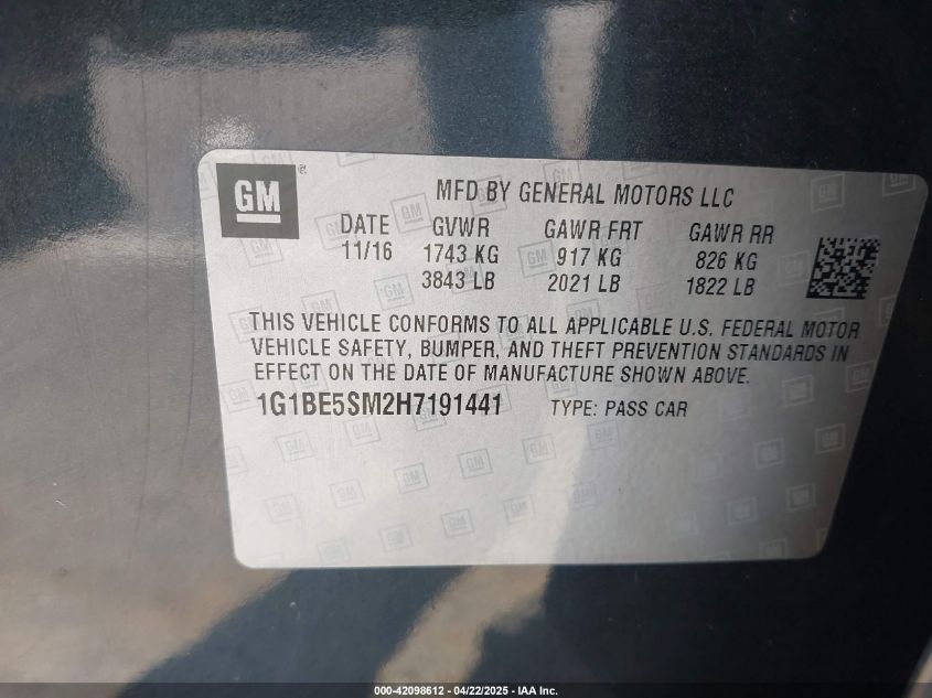 CHEVROLET CRUZE 1.4 2017 р.в., Передній привід (1G1BE5SM2H7191441) з США