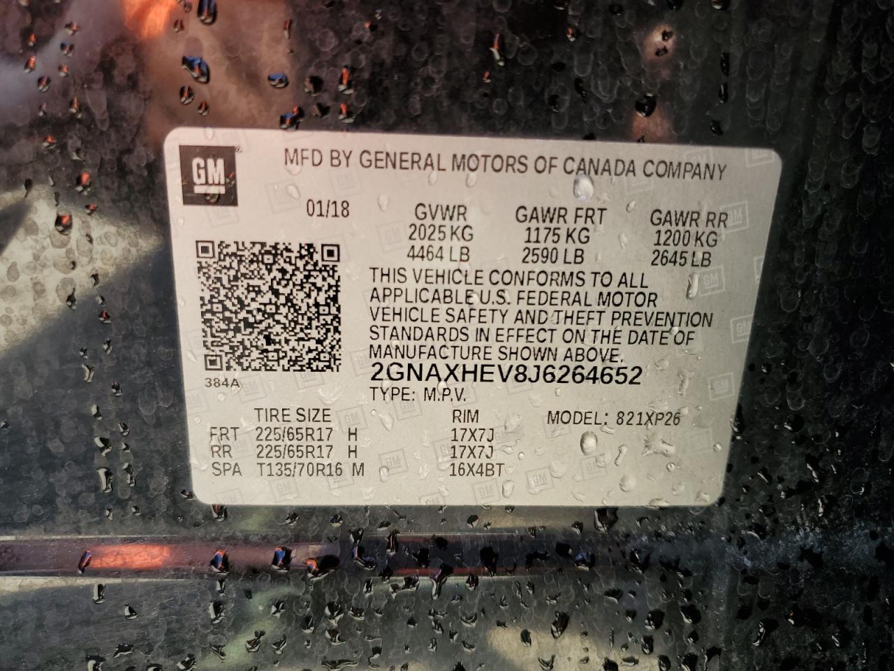Колір ЧорнийЦиліндри 4VIN 2GNAXHEV8J6264652Стан Заводиться та їде (перевірено)Ушкодження Передня або задня