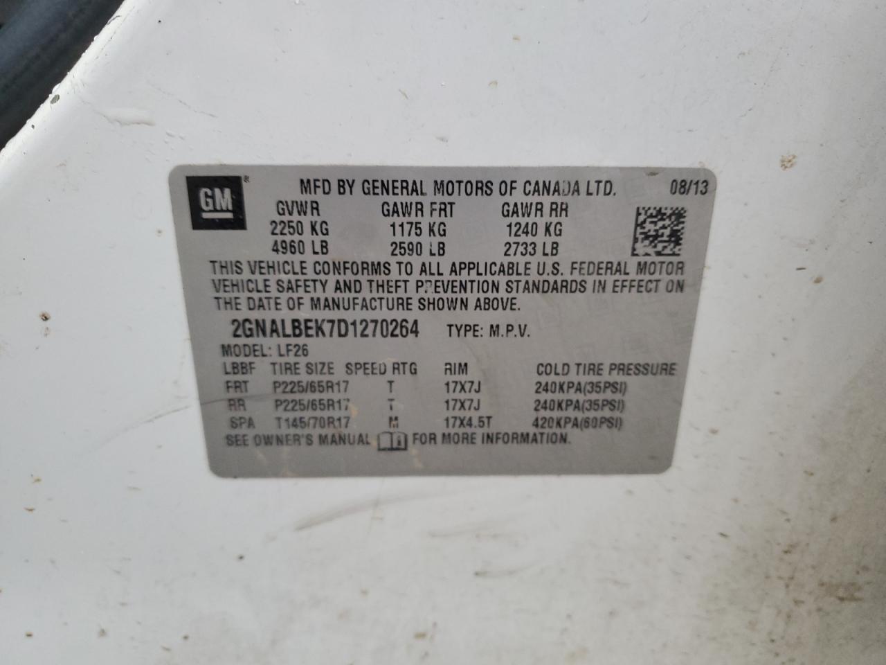 CHEVROLET EQUINOX 2.4 2013 р.в., (2GNALBEK7D1270264) з США
