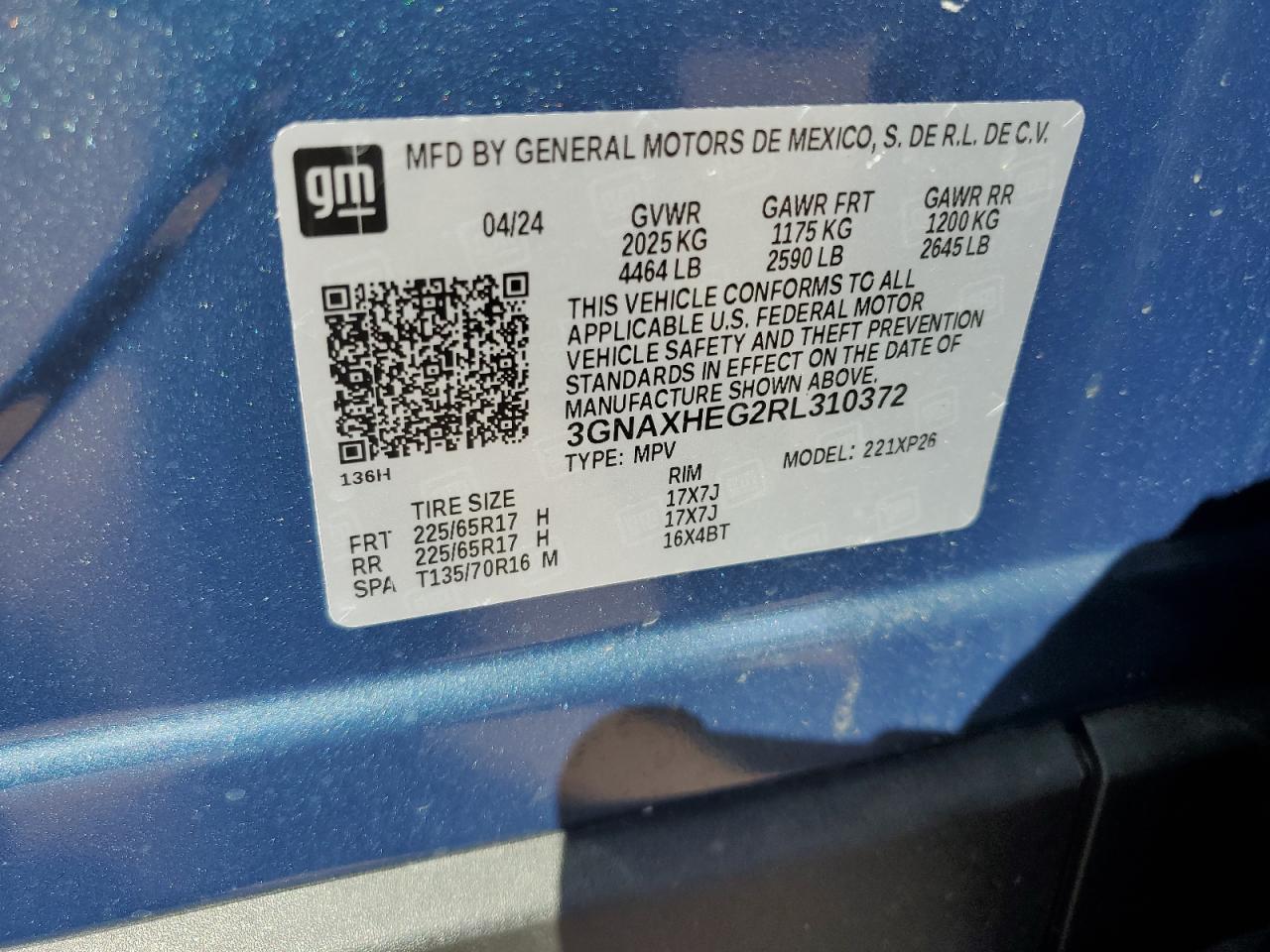 CHEVROLET EQUINOX 1.5 2024 р.в., (3GNAXHEG2RL310372) з США