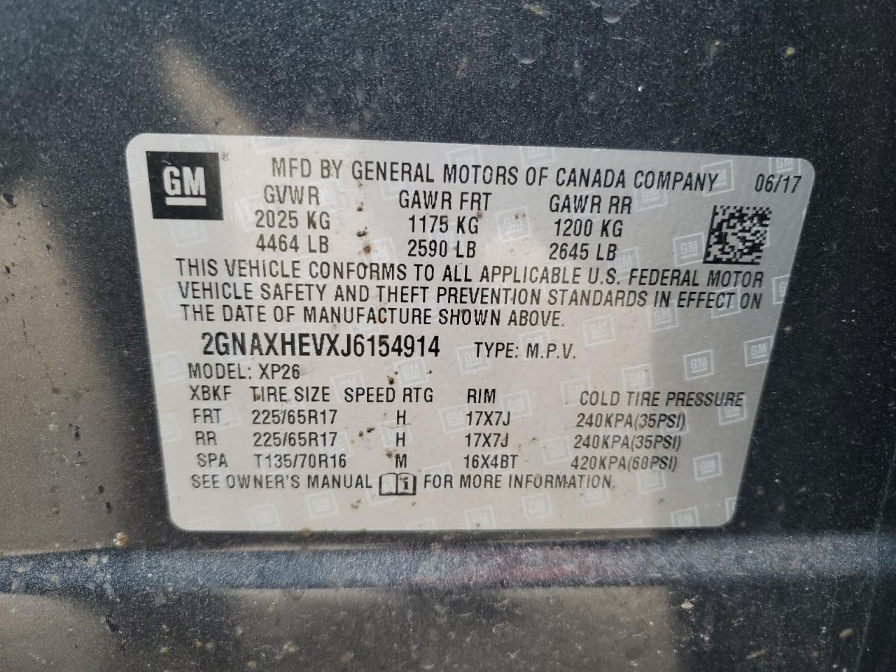 Колір Деревне вугілляЦиліндри 4VIN 2GNAXHEVXJ6154914Стан Заводиться та їде (перевірено)Ушкодження Передня або задня