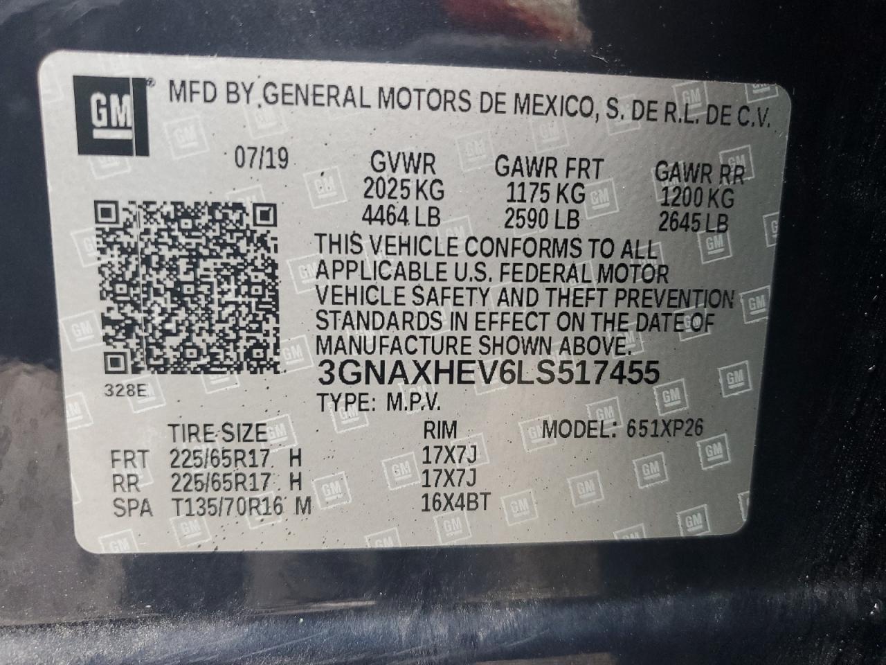 CHEVROLET EQUINOX 1.5 2020 р.в., (3GNAXHEV6LS517455) з США