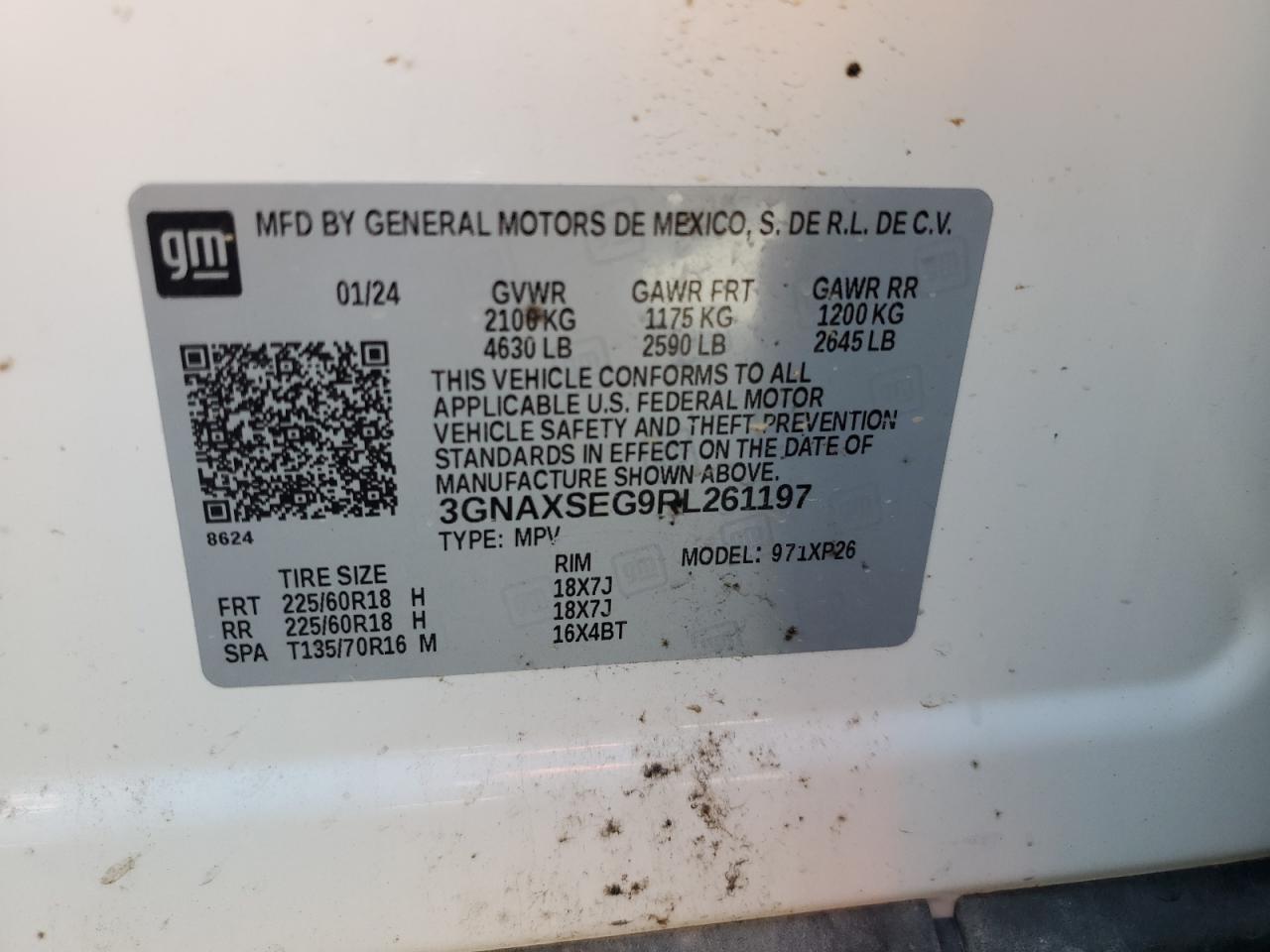CHEVROLET EQUINOX 1.5 2024 р.в., Повний привід (3GNAXSEG9RL261197) з США