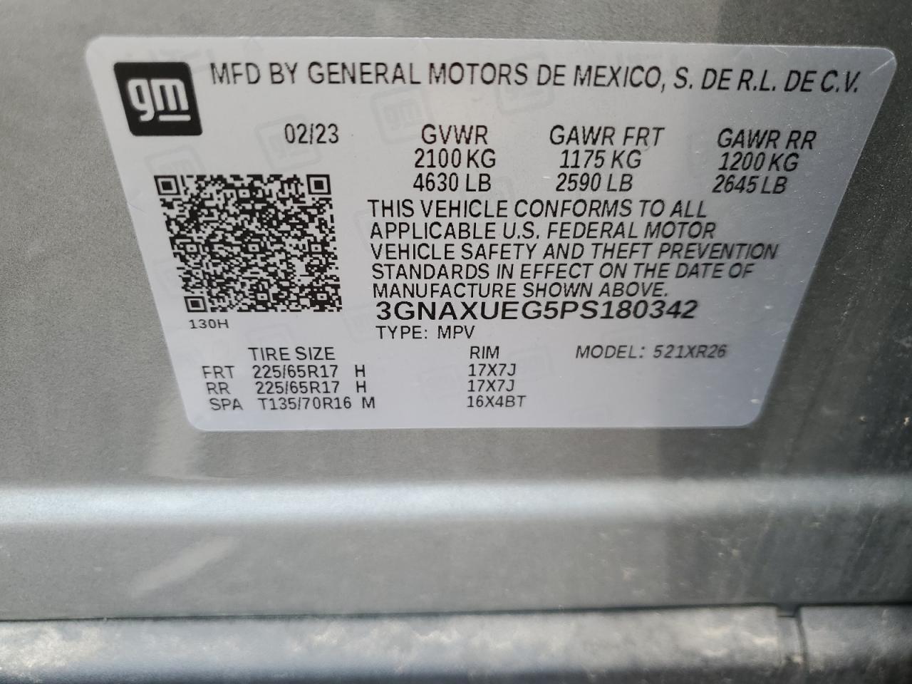 CHEVROLET EQUINOX 1.5 2023 р.в., Повний привід (3GNAXUEG5PS180342) з США