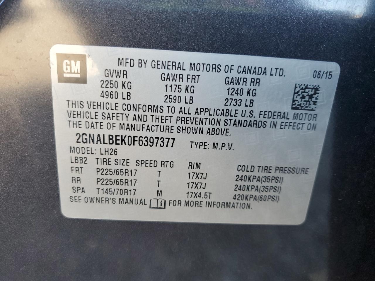 CHEVROLET EQUINOX 2.4 2015 р.в., (2GNALBEK0F6397377) з США