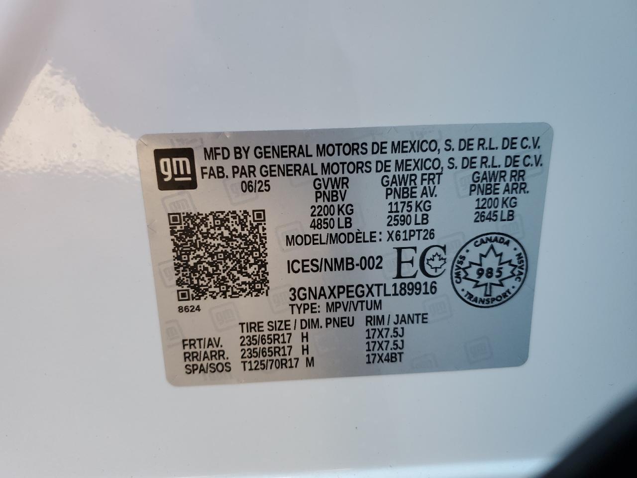CHEVROLET EQUINOX 1.5 2026 р.в., Повний привід (3GNAXPEGXTL189916) з США