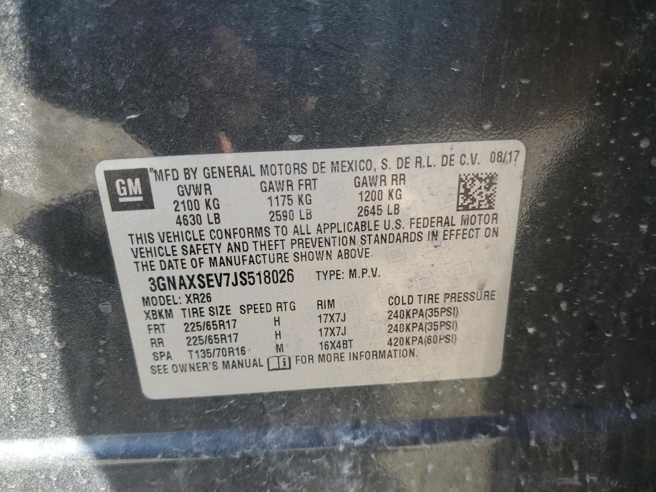 Колір СірийЦиліндри 4Привід Повний привідVIN 3GNAXSEV7JS518026Стан Заводиться та їде (перевірено)Ушкодження З боківДата аукціону 2025-11-14