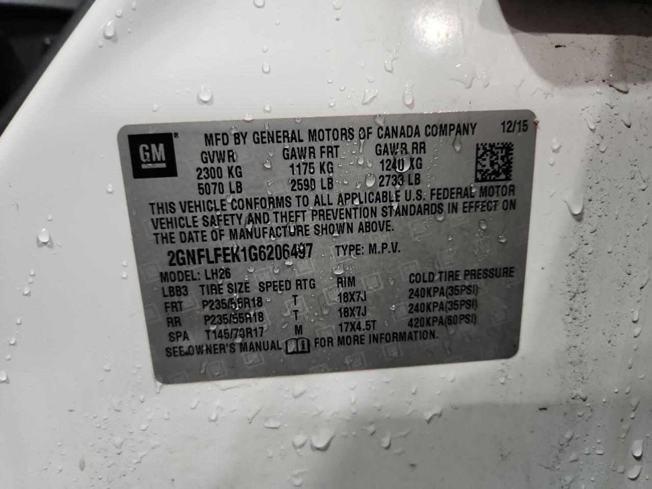 Колір БілийЦиліндри 4Привід Повний привідVIN 2GNFLFEK1G6206497Стан НевідомоУшкодження Передня або задня
