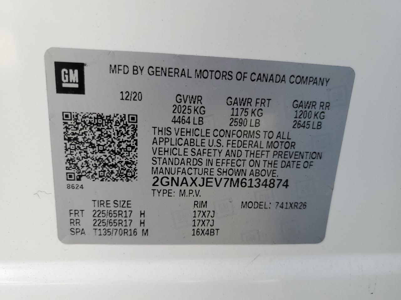 Колір БілийЦиліндри 4VIN 2GNAXJEV7M6134874Стан Заводиться та їде (перевірено)Ушкодження ЗадняДата аукціону 2025-11-05