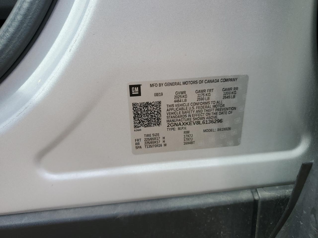 CHEVROLET EQUINOX 1.5 2020 р.в., (2GNAXKEV8L6136296) з США