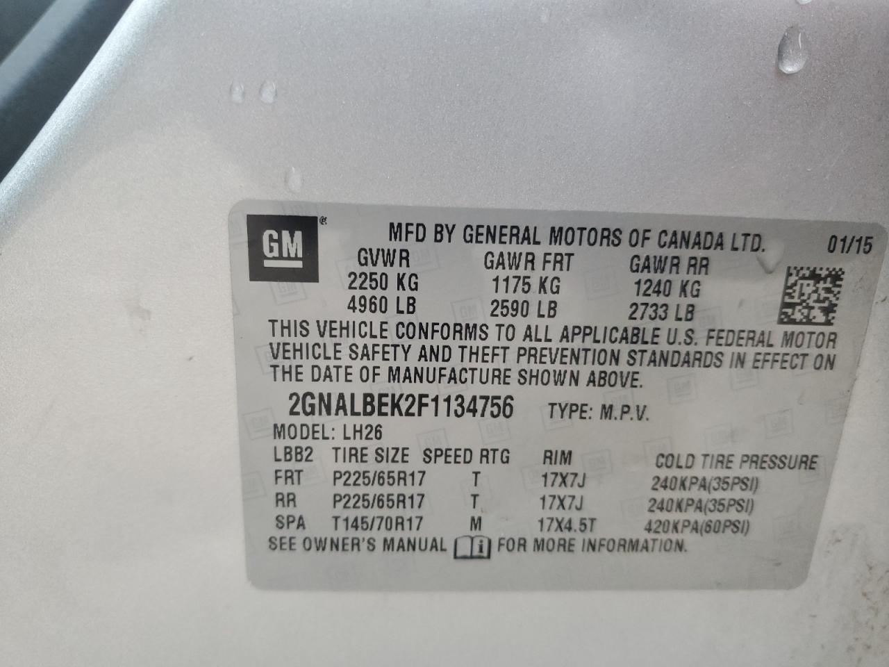 Колір СрібнийЦиліндри 4VIN 2GNALBEK2F1134756Стан ЗаводитьсяУшкодження Передня або задня