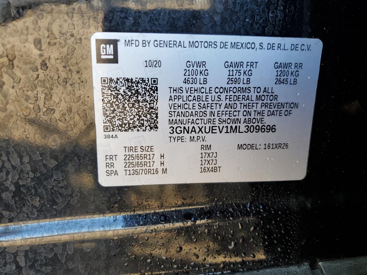 CHEVROLET EQUINOX 1.5 2021 р.в., Повний привід (3GNAXUEV1ML309696) з США
