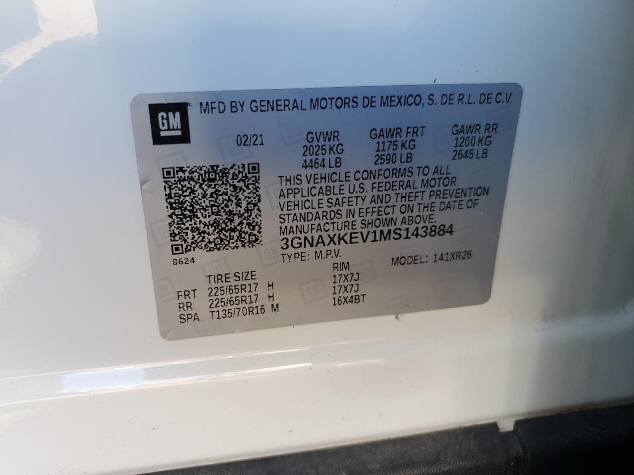 CHEVROLET EQUINOX 1.5 2021 р.в., (3GNAXKEV1MS143884) з США