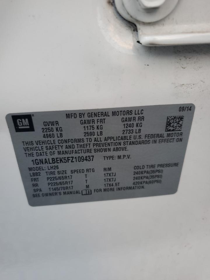 CHEVROLET EQUINOX 2.4 2015 р.в., (1GNALBEK5FZ109437) з США
