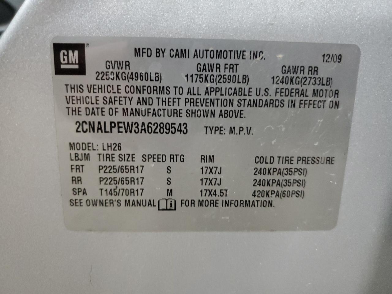 CHEVROLET EQUINOX 2.4 2010 р.в., (2CNALPEW3A6289543) з США