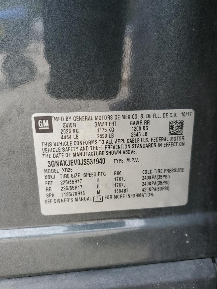 Колір СірийЦиліндри 4VIN 3GNAXJEV0JS531940Стан НевідомоУшкодження Передня або задня