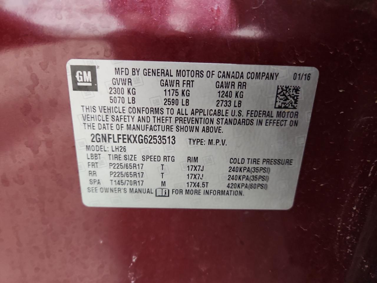 CHEVROLET EQUINOX 2.4 2016 р.в., Повний привід (2GNFLFEKXG6253513) з США