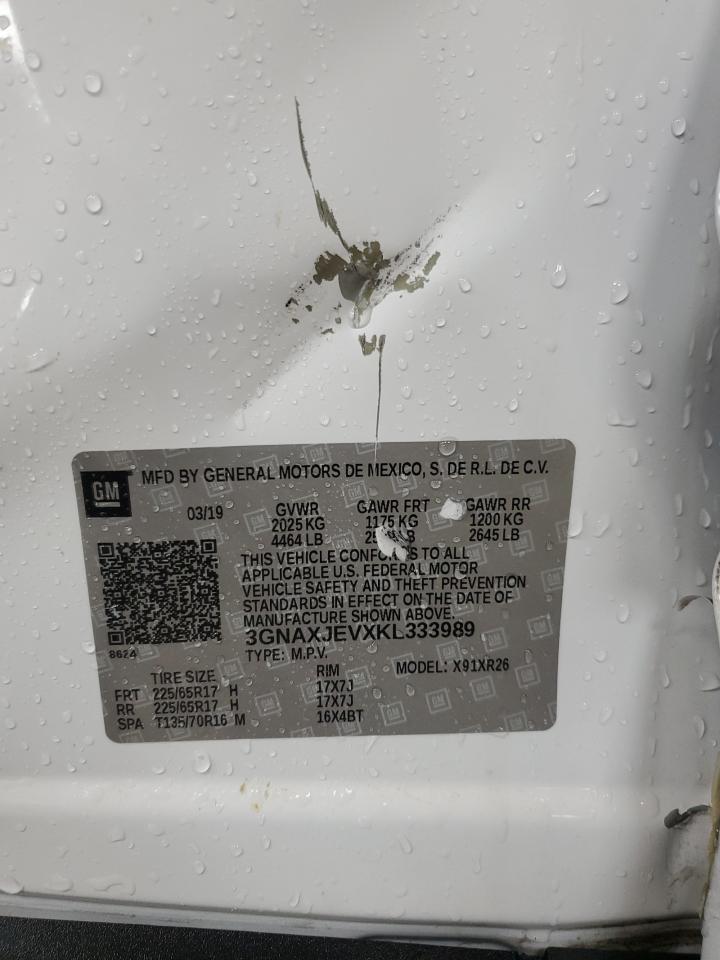 Колір БілийЦиліндри 4VIN 3GNAXJEVXKL333989Стан Заводиться та їде (перевірено)Ушкодження З боків