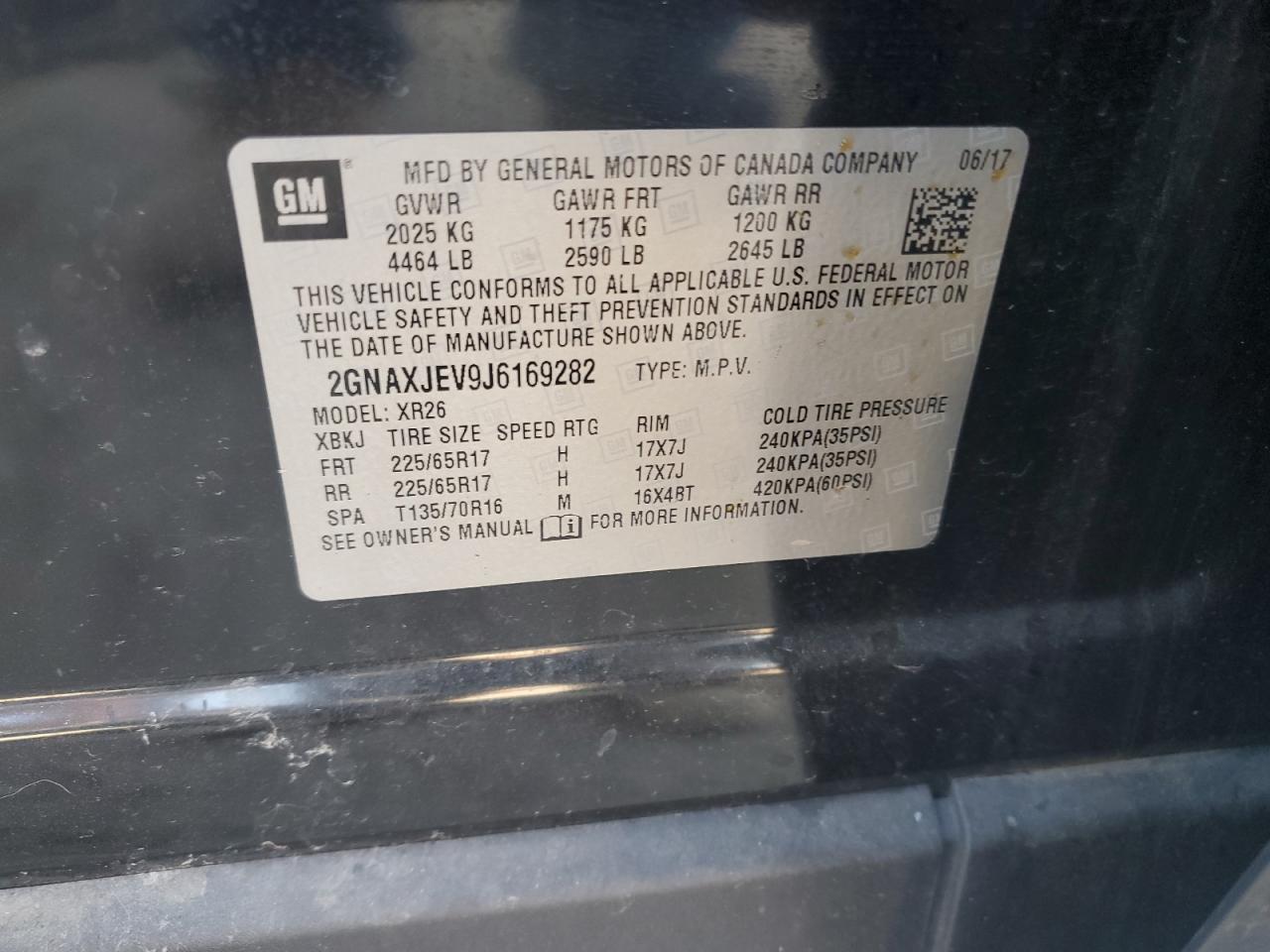 Колір ЧорнийЦиліндри 4VIN 2GNAXJEV9J6169282Стан ЗаводитьсяУшкодження Низ