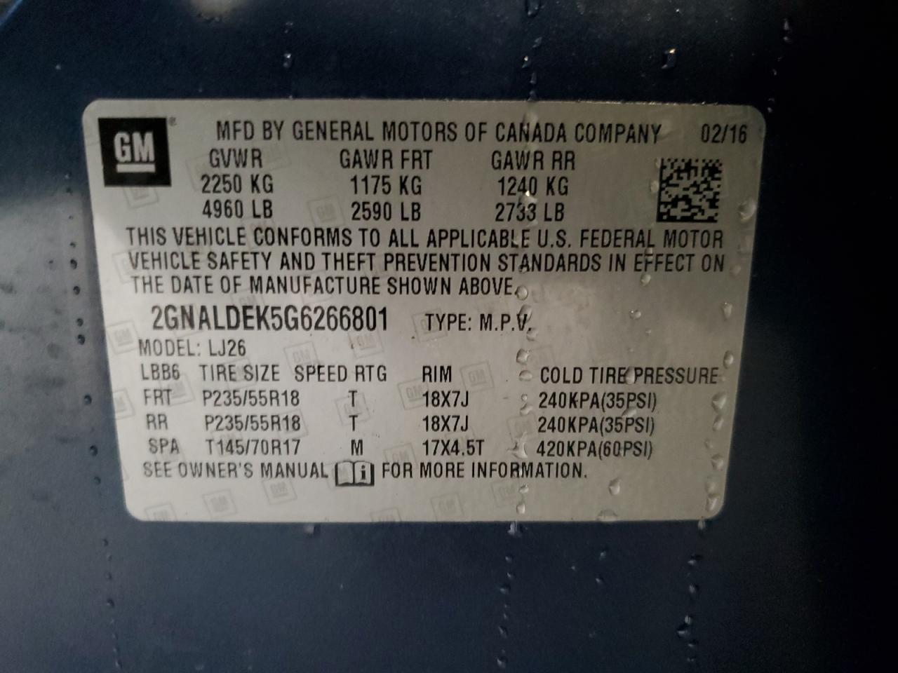 Колір СинійЦиліндри 4VIN 2GNALDEK5G6266801Стан НевідомоУшкодження Передня або задня