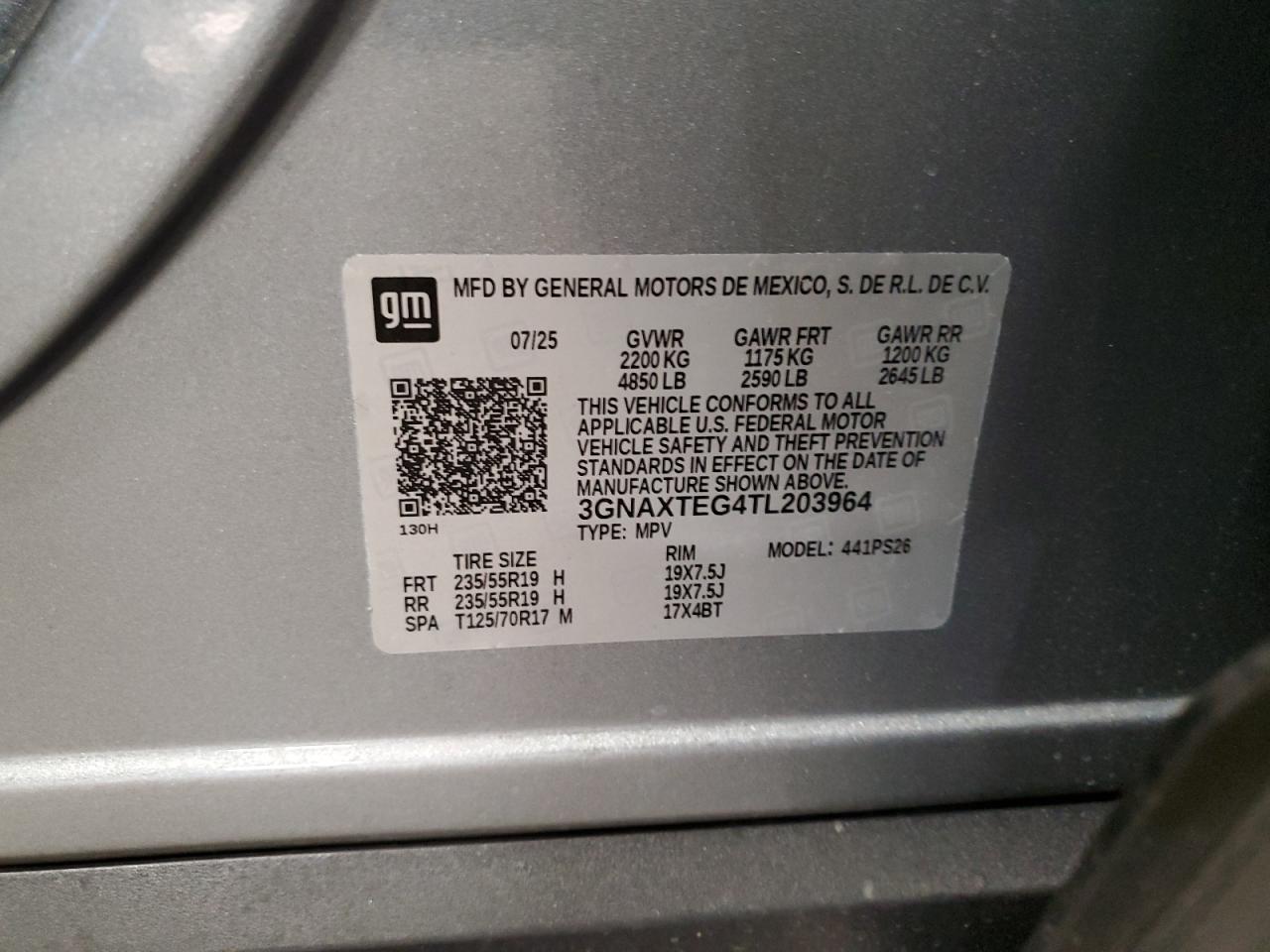 CHEVROLET EQUINOX 1.5 2026 р.в., Повний привід (3GNAXTEG4TL203964) з США