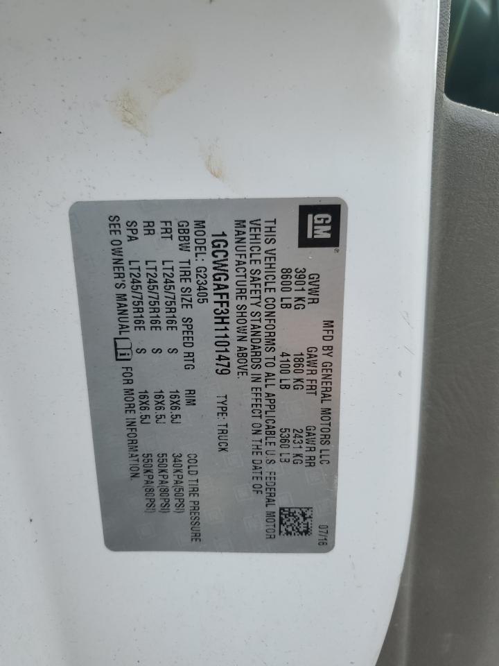 CHEVROLET EXPRESS 4.8 2017 р.в., Задній привід (1GCWGAFF3H1101479) з США
