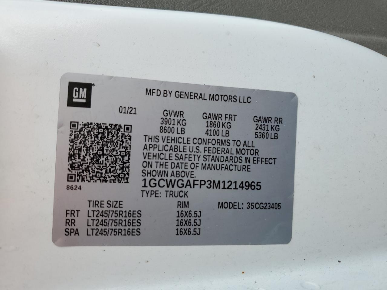 CHEVROLET EXPRESS 4.3 2021 р.в., Задній привід (1GCWGAFP3M1214965) з США