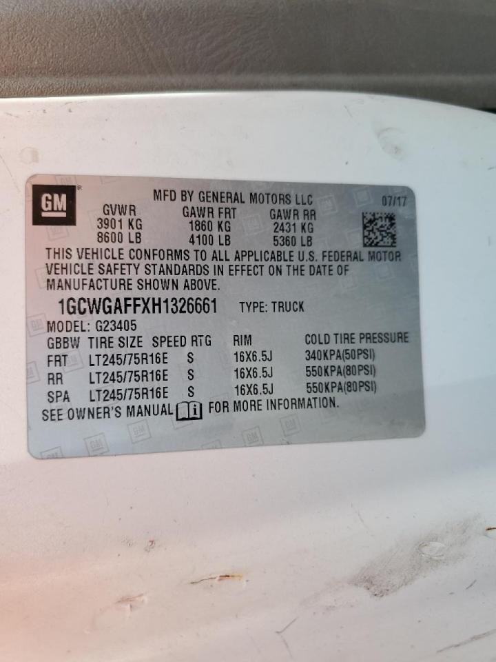 CHEVROLET EXPRESS 4.8 2017 р.в., Задній привід (1GCWGAFFXH1326661) з США