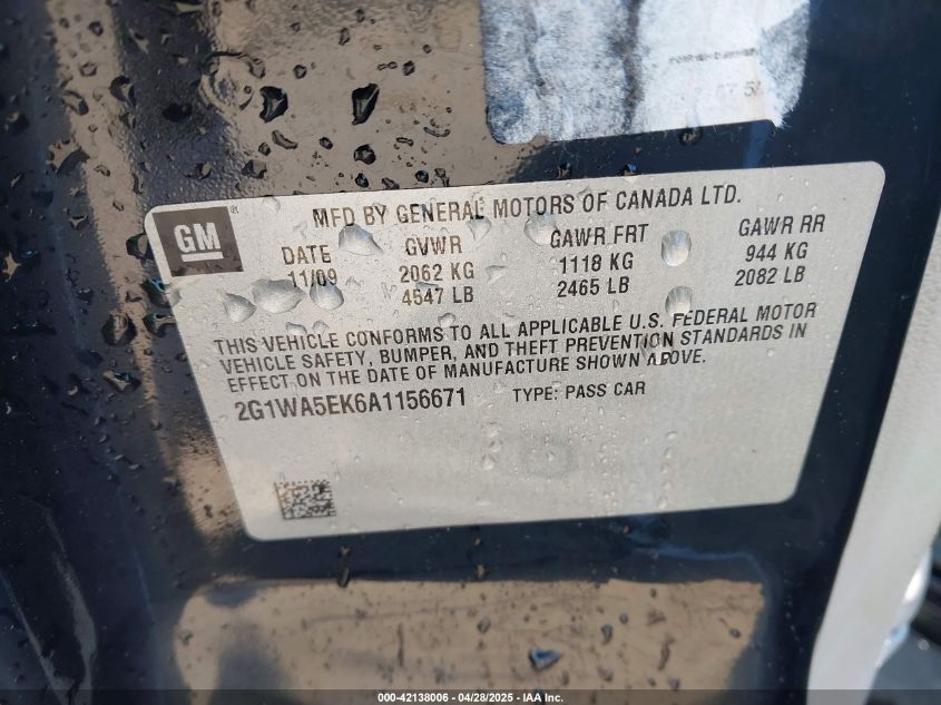 CHEVROLET IMPALA 3.5 2010 р.в., Передній привід (2G1WA5EK6A1156671) з США