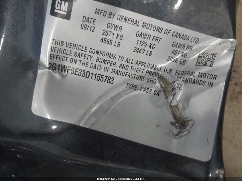 CHEVROLET IMPALA 3.6 2013 р.в., Передній привід (2G1WF5E33D1155783) з США