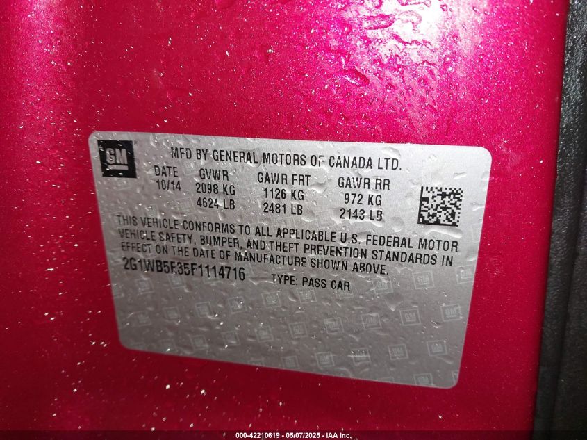 CHEVROLET IMPALA 3.6 2015 р.в., Передній привід (2G1WB5E35F1114716) з США