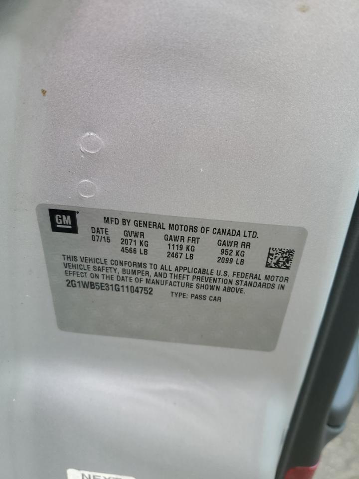 CHEVROLET IMPALA 3.6 2016 р.в., (2G1WB5E31G1104752) з США